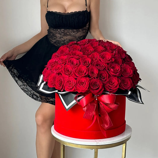 50 Red Rose Flower Bouquet In A Box | Long Stem Red Roses