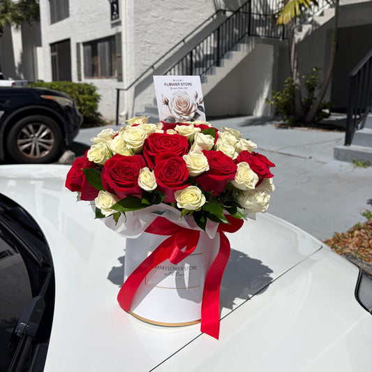 White And Red Roses In A Flower Box