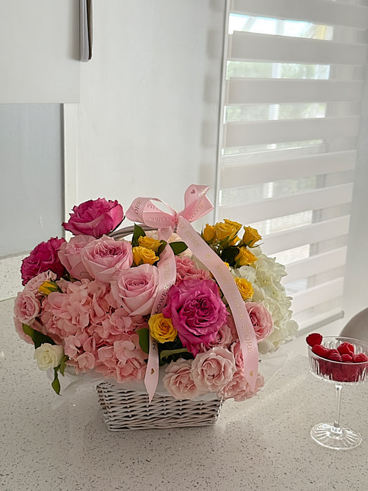 Pink Garden Roses, Hydrangeas & Lisianthus Flower Bouquet In A Box
