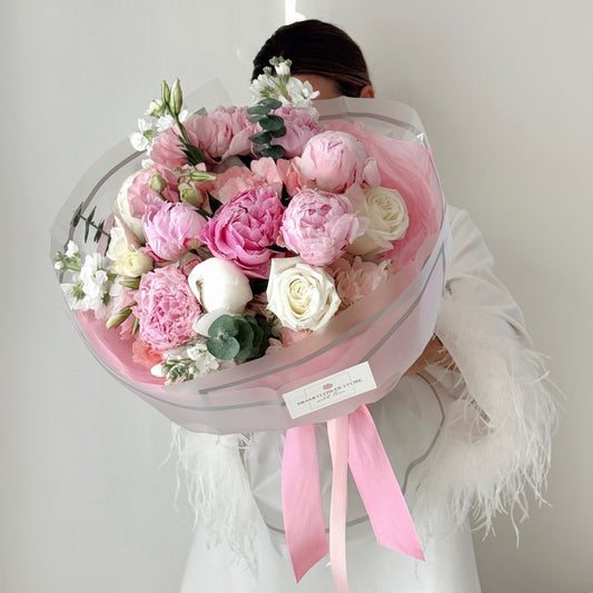 Peony Flower Bouquet w/ Hydrangea & White Roses In A Box
