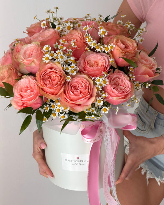 Roses & Chamomile Flower Bouquet In A Box