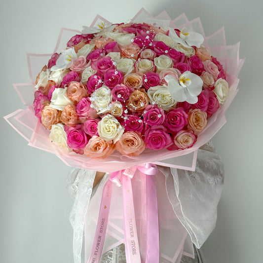 100 Rose Flower Bouquet With Orchids