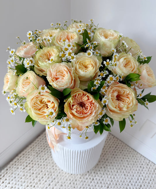 Roses & Chamomile Flower Bouquet In A Box