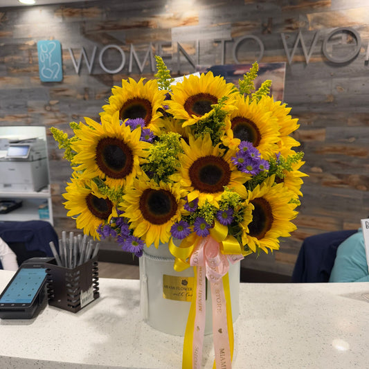 Sunflower, Solidago & Limonium Flower Bouquet In A Box