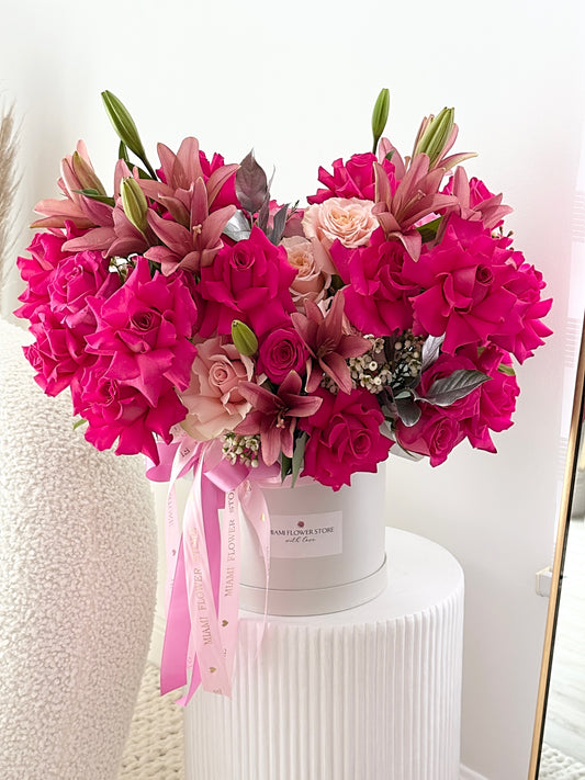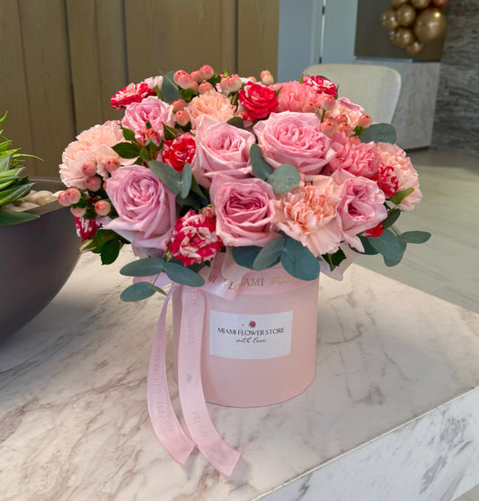 Наши флористы создают букеты из 12 до 300+ цветов, в круглых и квадратных шляпных коробках, а также в декоративных плетенных корзинах из натуральных текстурированных материалов. Мы предлагаем не просто цветы в Маями — мы предлагаем роскошный подарок - послание, полное заботы и стиля.