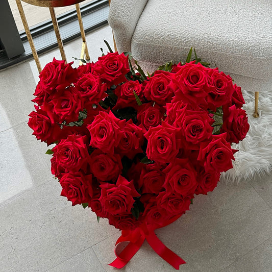 50 Red Rose Flower Bouquet In Heart Shaped Box