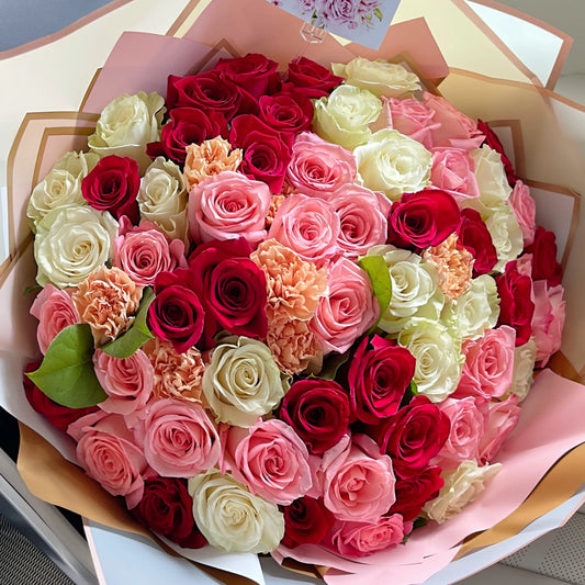 75 Rose Flower Bouquet Of Colored Mixed Roses