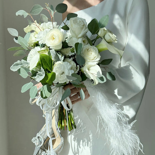 White French Rose & Ranunculus Bridal Wedding Flower Bouquet