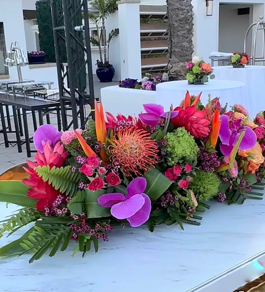 Exotic Flower Table Centerpiece - Tropical Protea, Orchids, Bird Of Paradise, Ginger.