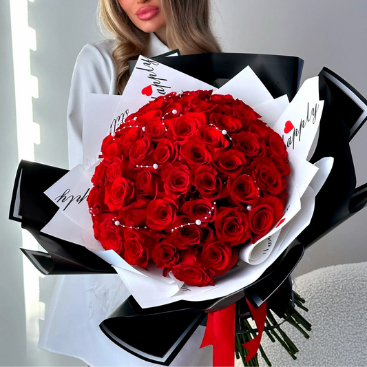 50/75 Classic Red Rose Flower Bouquet With Pearl Beads